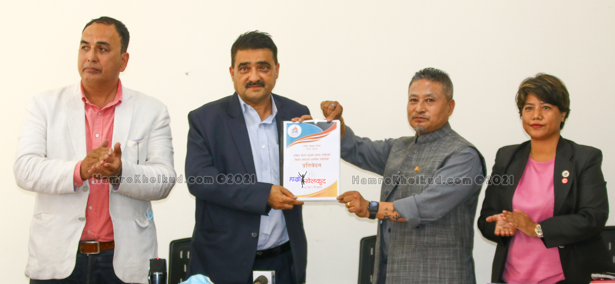 काठमाडौं (हाम्रो खेलकुद) –राष्ट्रिय फुटबल टोलीका प्रशिक्षक अब्दुल्लाह अलमुताइरी र अखिल नेपाल फुटबल संघ (एन्फा) का वरिष्ठ उपाध्यक्ष पंकजविक्रम नेम्बाङबीच विवादलाई सुल्झाउन राष्ट्रिय खेलकुद परिषद (राखेप) ले गठन गरको छानविन समितिले बुधबार राखेप सदस्य सचिव रमेशकुमार सिलवाललाई प्रतिवेदन पेश गर्यो । छानविनको बयान लिएको झन्डै २ सातापछि समितिले प्रतिवेदन बुझाएको थियो ।