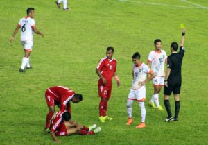कुचिङ (हाम्रो खेलकुद) –मलेसियाको कुचिङमा जारी एएफसी सोलिडारिटी कपको समूह चरणको अन्तिम खेलमा नेपाल र ब्रुनाईबीच प्रतिस्पर्धा भइरहेको छ । यी दुईबीचको भएको पहिलो हाफका केही फोटो हो । नवयुग श्रेष्ठको गोलबाट नेपालले खेलमा अग्रता लिएको थियो ।