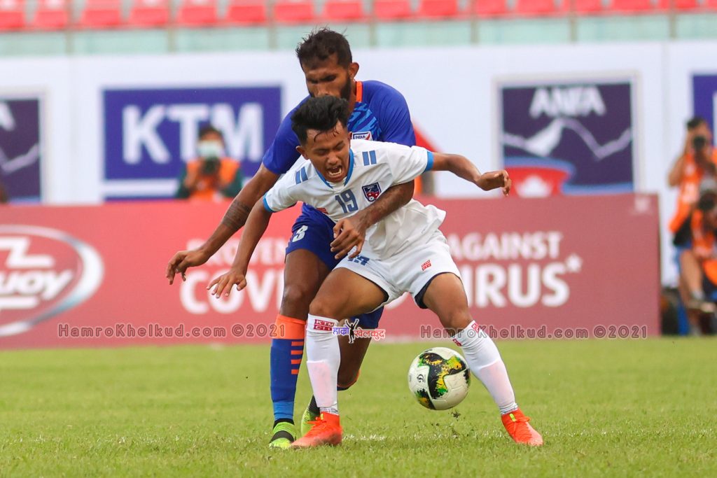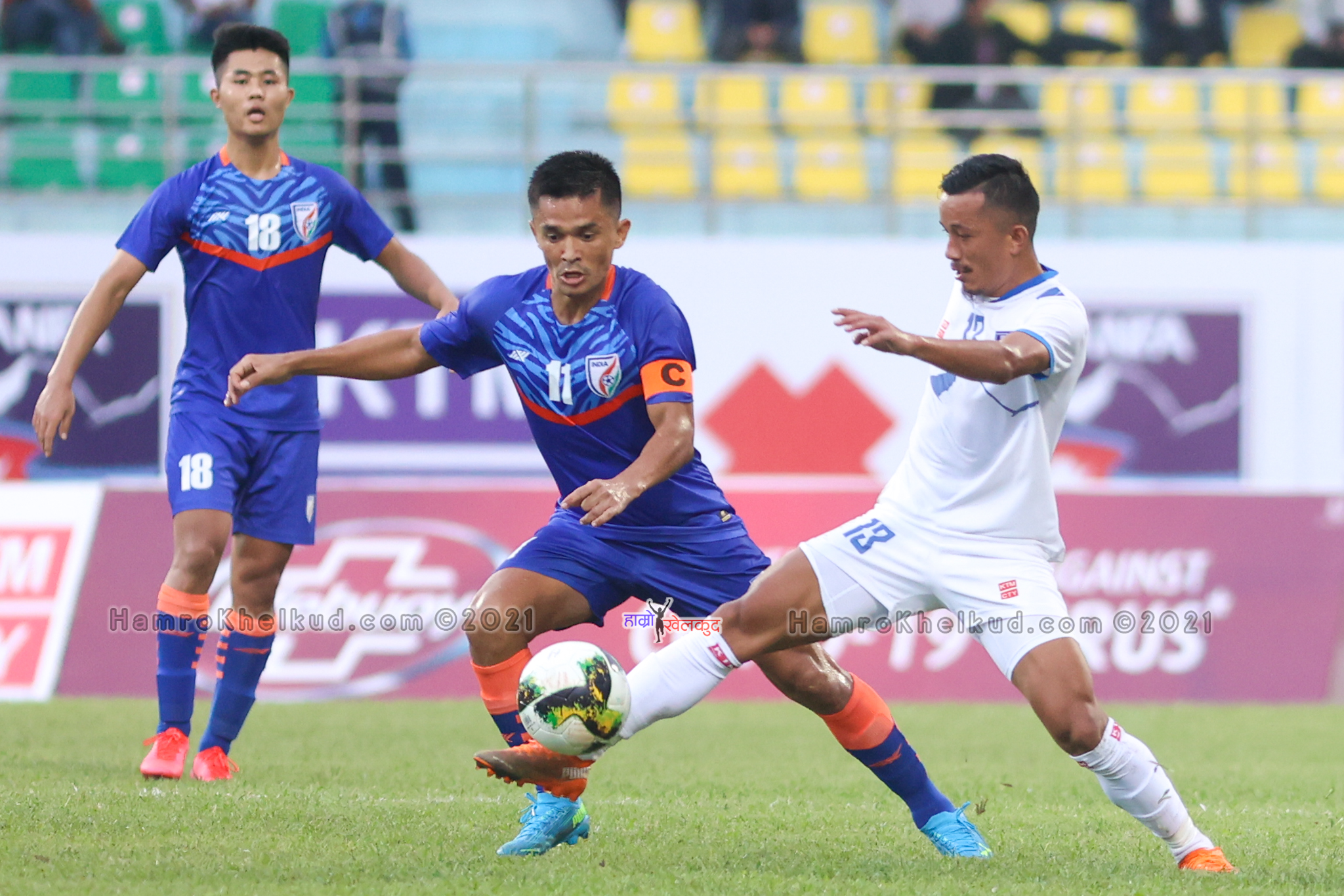 त्रिपुरेश्वरस्थित दशरथ रंगशालामा आइतबार भएको खेलमा नेपालले पहिलो हाफमा भारतको तुलनामा बढी अवसर सिर्जन गरेपनि फिनिसिङमा चुक्दा पहिलो हाफ गोलरहित बराबरीमा सकिएको हो ।