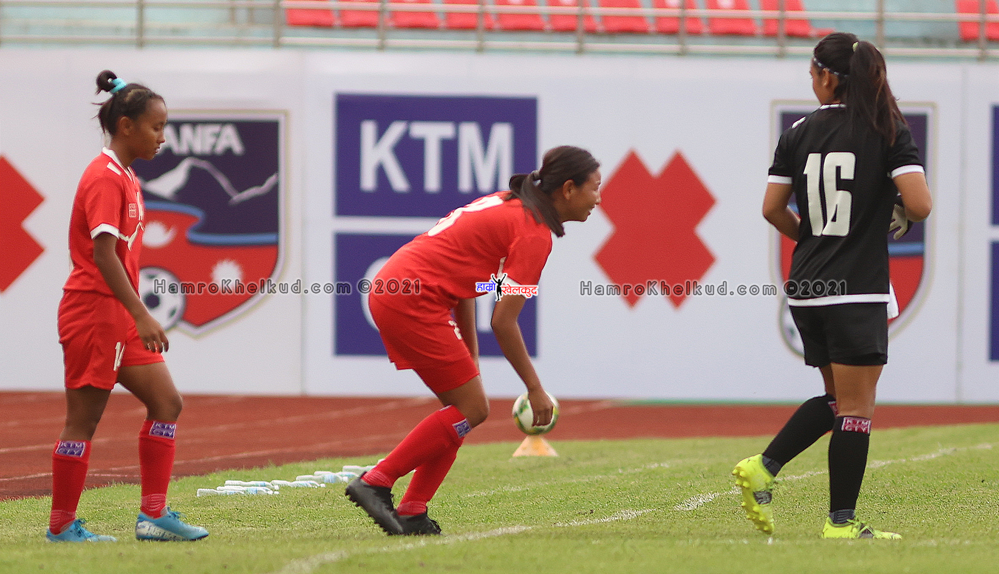 नेपाली राष्ट्रिय महिला फुटबल टोलीले विहीबार दशरथ रंगशालामा अन्तर्राष्ट्रिय मैत्रीपूर्ण खेलको डेब्यू गर्यो । बंगलादेशविरुद्ध खेलमा नेपाली टोलीको लाइनअप मैदान प्रवेश गर्ने क्रममा १२ खेलाडी मैदान छिरे । राष्ट्रिय गान सकिएसँगै डिफेन्डर पुनम जर्घा मगर लाइनअपबाट अलग्गिएर पुन: बेन्च फर्किइन् ।