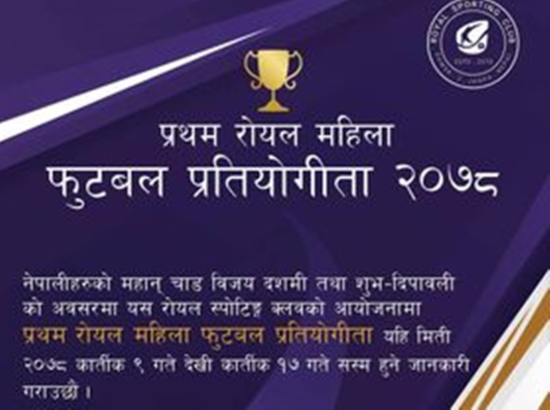 रोयल स्पोर्टिङ क्लब दमकले नेपालीहरुको महान् पर्व विजयी दशमी र तथा दिपावालीको अवसर पारेर ९ देखि १७ कात्तिकसम्म महिला फुटबल प्रतियोगिता आयोजना गर्न लागेको सचिव इजु तामाङले जानकारी गराए ।