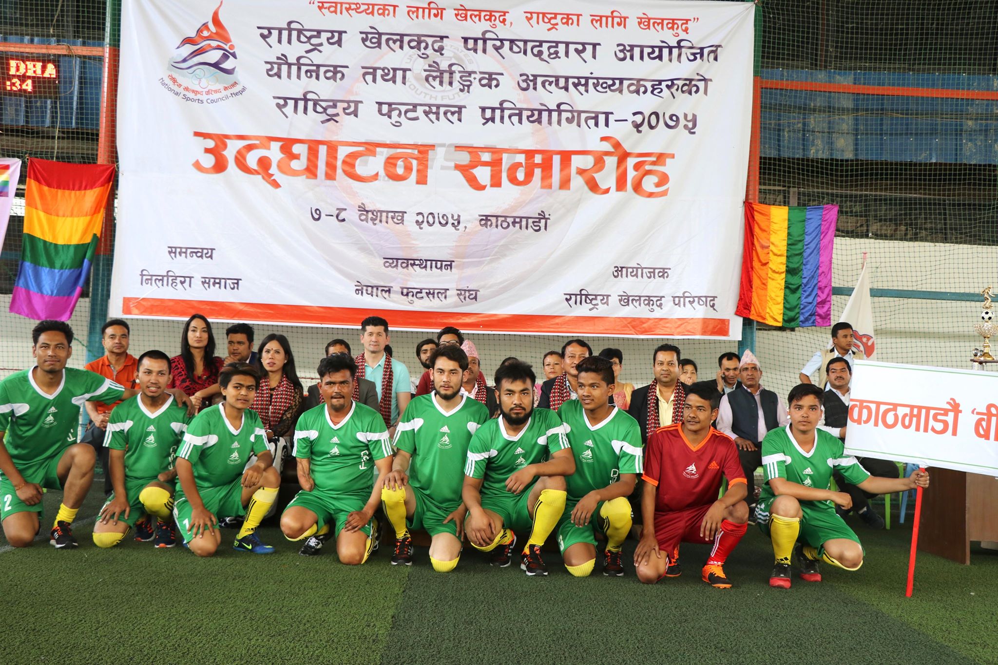 काठमाडौं (हाम्रो खेलकुद) – काठमाडौं ‘ए’ यौनिक तथा लैङ्गिक अल्पसंख्यकहरुको राष्ट्रिय फुटसल प्रतियोगिताको सेमिफाइनलमा प्रवेश गरेको छ ।