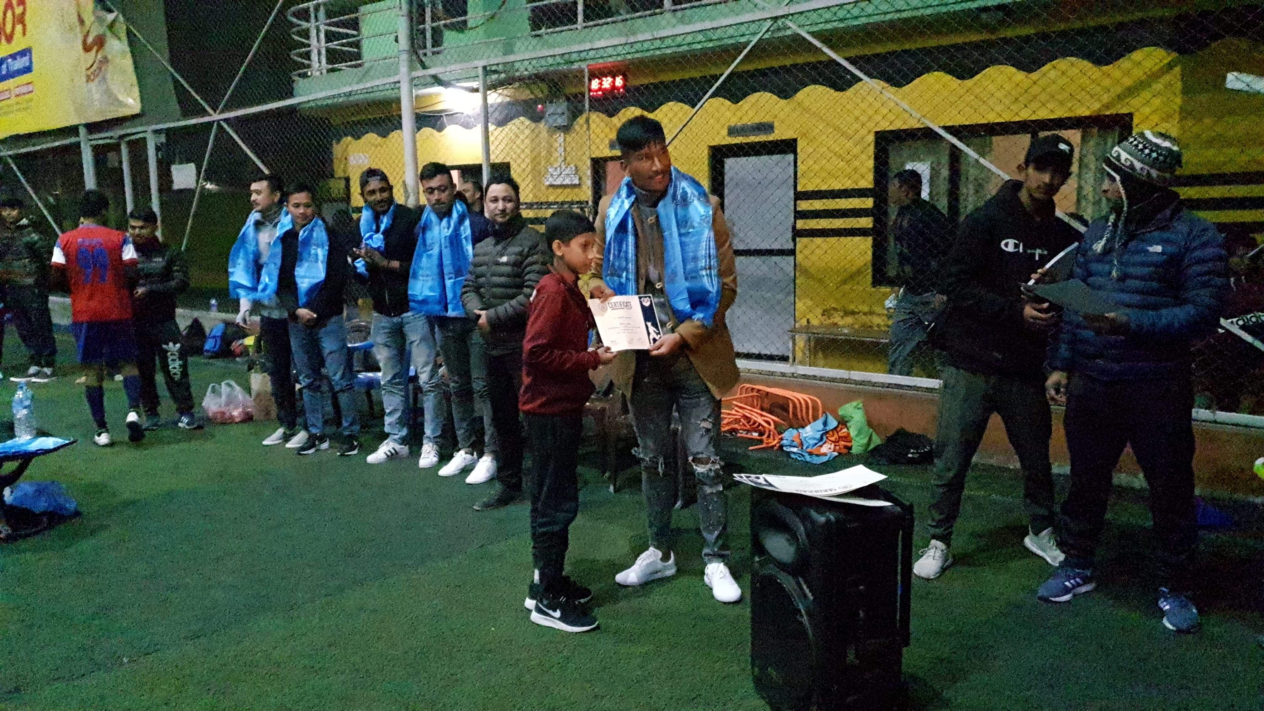 समाज कल्याणले आफ्नो एकेडेमीको दिक्षान्त समारोहको अवसर पारेर दुई खेलाडी सम्मान गरेको हो । केन्द्रले वर्षेनी दुई पटक साप्ताहिक प्रशिक्षण कार्यक्रम संचालन गर्दै आएको छ । कार्यक्रममा मनाङ मर्स्याङदी क्लबका खेलाडीहरु विशाल श्रेष्ठ, सुजल श्रेष्ठ र विशाल राई लगायत पनि उपस्थित थिए ।