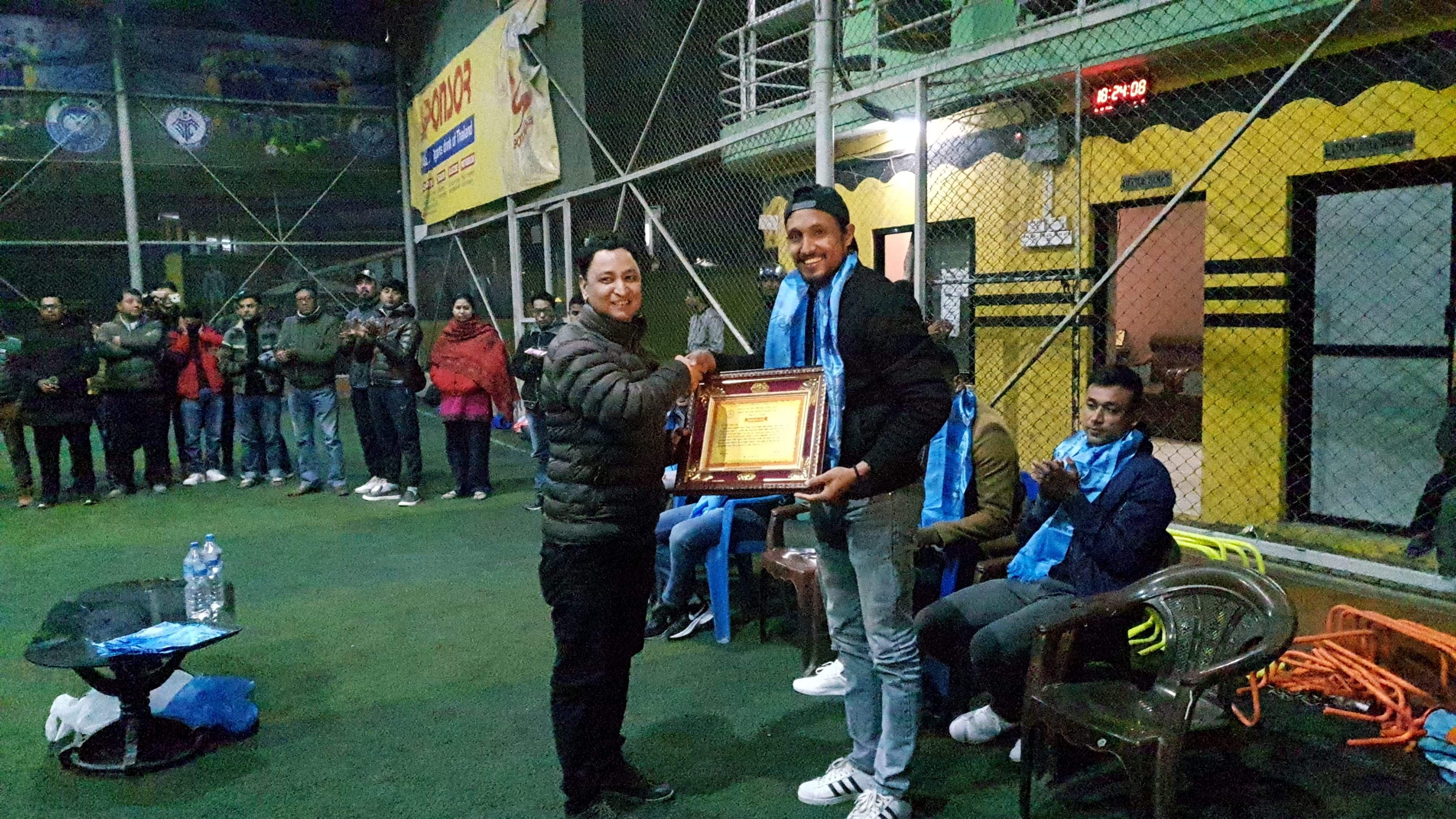 काठमाडौं (हाम्रो खेलकुद) – नेपाली राष्ट्रिय फुटबल टोलीका सदस्यद्वय रोहित चन्द र किरण चेम्जोङ शनिबार सम्मानित भएका छन् ।