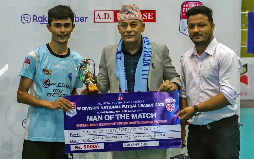 राष्ट्रिय ए डिभिजन फुटसल लिग अन्तर्गत लिग चरणको अन्तिम खेलमा मंगलबार घरेलु टोली सविन मेमोरियलको लागि निर्णायक दिन थियो । पोखराको स्थानीय टोली सविन मेमोरियललाई प्लेअफ पुग्नका लागि शंखमुल फुटसलमाथि जित हासिल गर्नुको विकल्प थिएन । यस्तोमा टोलीका मुख्य फरवार्ड अभिनाष तामाङ नहुँदा टोली यसै दबाबमा परिसकेको थियो ।