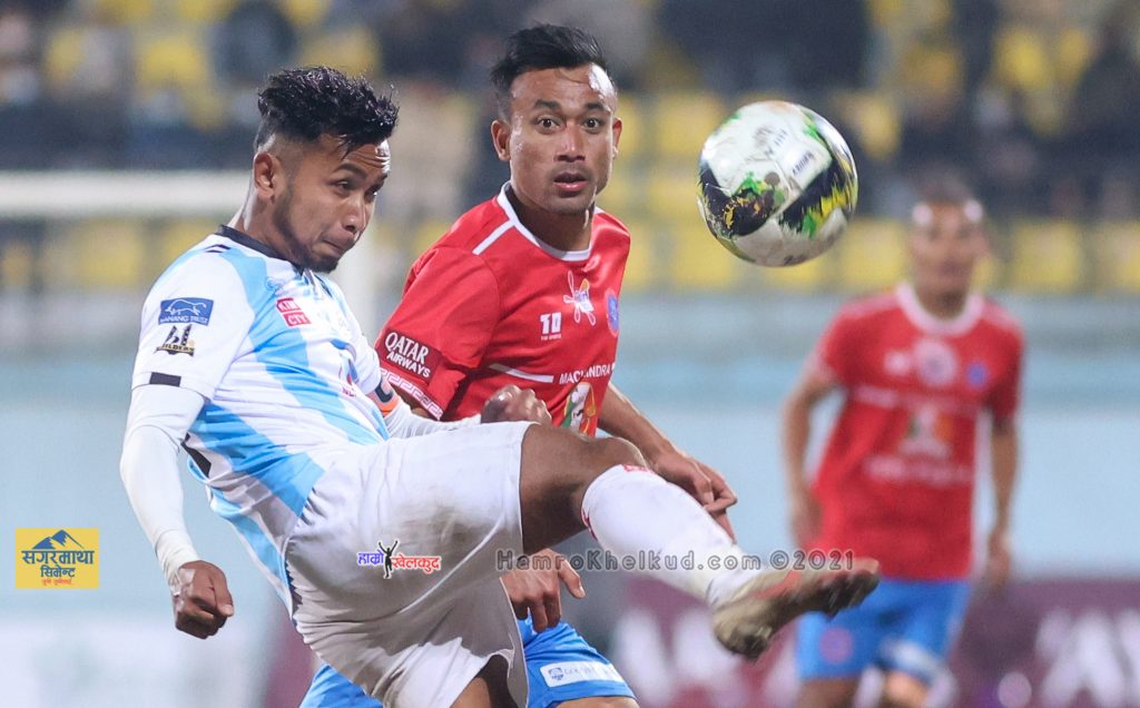 त्रिपुरेशवरस्थित दशरथ रंगशालामा शनिबार भएको खेलको तेस्रो मिनेटमा एडिलाजा सोमिडेको ओभरहेड किक पोस्ट नजिकैबाट बाहिरियो । १५औं मिनेटमा कप्तान अन्जन विष्टको प्रहार पहिलो बार च्याप्दै बाहिरिदा मनाङ अग्रता लिनबाट चुक्यो । २५औं मिनेटमा विशाल राईको