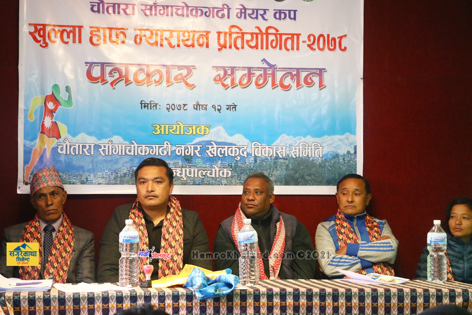 आयोजक चौतारा साँगाचोकगढी नगरपालिकाले सोमबार राजधानीमा पत्रकार सम्मेलनको आयोजना गर्दै खुल्ला हाप म्याराथन पुस २४ गते शनिबार हुने जानकारी गराएको हो ।