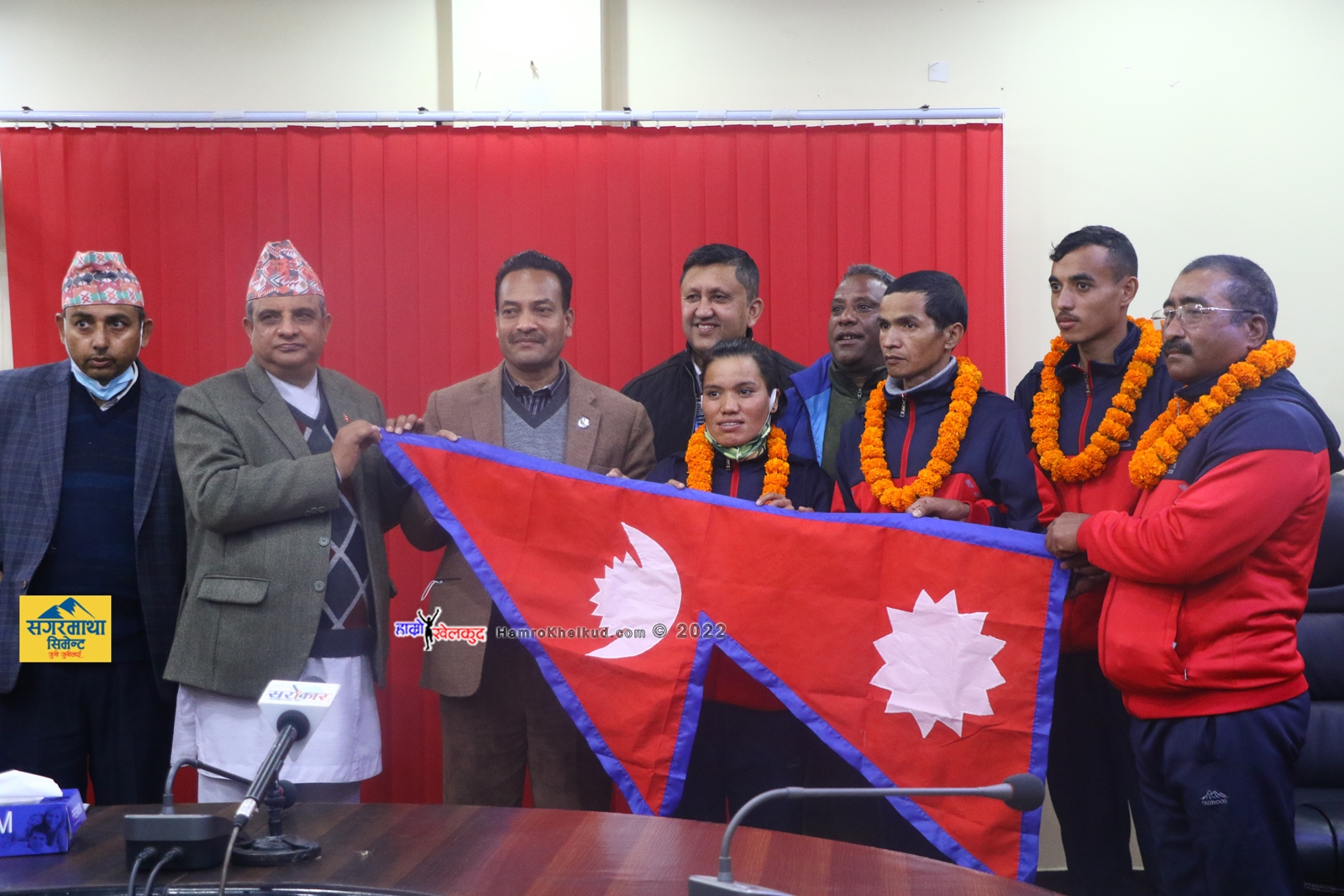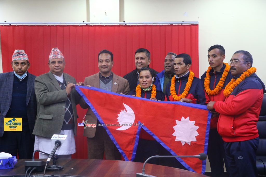 मन्त्रालयले आफ्नै सभाहलमा बिहीबार एक कार्यक्रमका बीच युवा तथा खेलकुद मन्त्री महेश्वर जंग गहतराज (अथक) ले तीन खेलाडी र एक प्रशिक्षकसहित चार सदस्यीय टोलीलाई सफलताको शुभकामासहित बिदाई गरे । नेपाली टोली शुक्रबार त्यसतर्फ प्रस्थान गर्नेछ ।