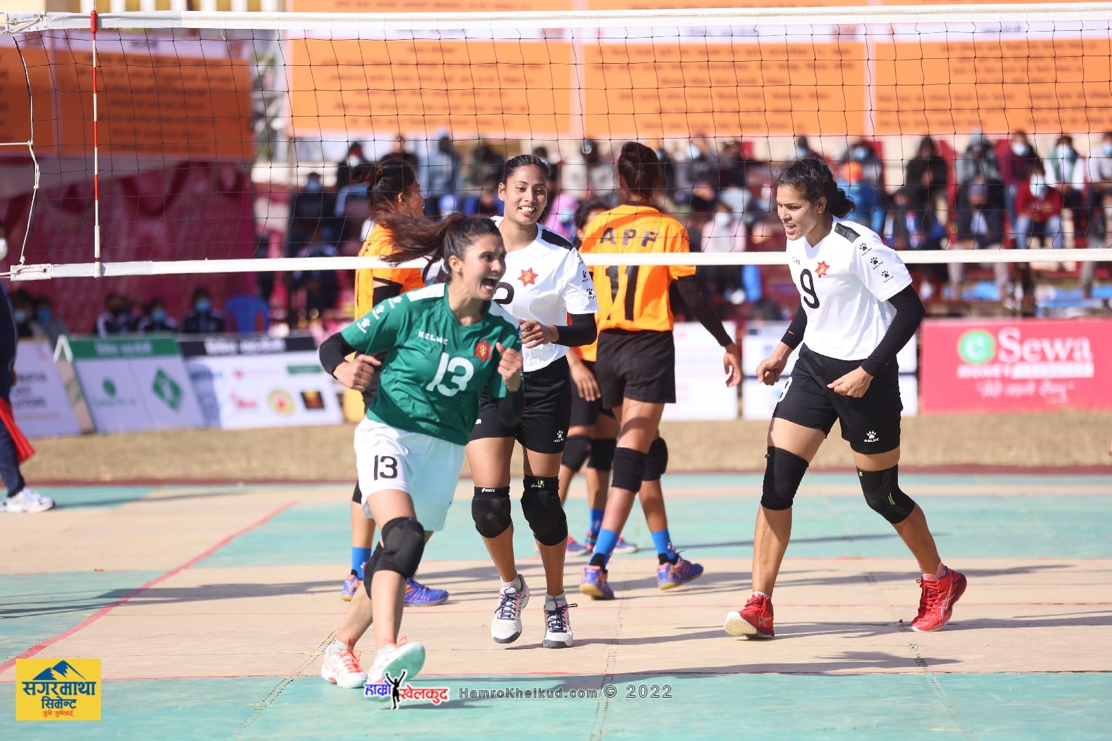 पुलिस र एपिएफले भन्दा पछिमात्रै महिला भलिबल शुरु गरेको आर्मी उपाधिको संघारमा रहेको छ । यसपटक आर्मीले फाइनल यात्रामा एपिएफ र पुलिसकै चुनौती पन्छाउन सफल भएको थियो ।