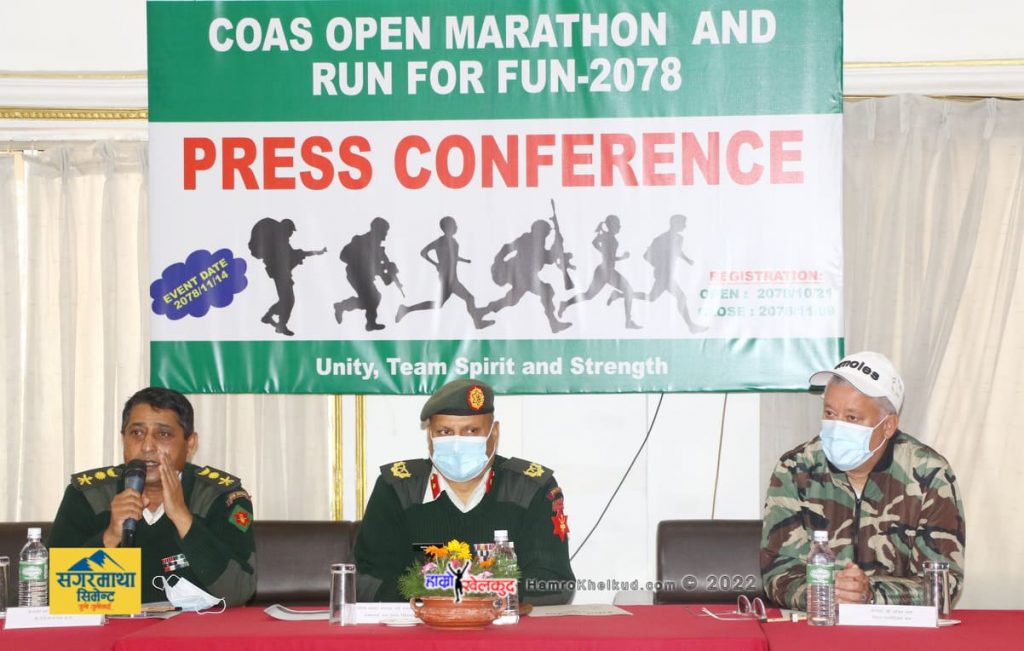 काठमाडौं (हाम्रो खेलकुद)– नेपाल सेनाले अर्को महिना प्रधान सेनापती खेलकुद म्याराथन तथा रन फर फन आयोजना गर्ने भएको छ । युनिटी, टिम स्पिरिट र स्ट्रेन्थ नाराका साथ म्याराथन फागुन १४ गते आयोजना गरिने सेनाले बिहीबार पत्रकार सम्मेलनमार्फत जानकारी दिएको छ ।