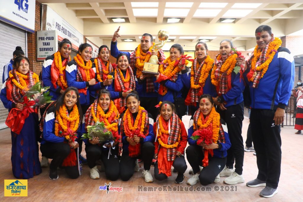 अन्तर्राष्ट्रिय खेलकुद प्रतियोगितामा सहभागी भई पदक प्राप्त गर्ने खेलाडी तथा टिमलाई प्रोत्साहन गर्ने नीति अनुरुप च्याम्पियन महिला भलिबल टिमलाई फागुन ७ नगदसहित सम्मान गर्ने जनाएको छ ।