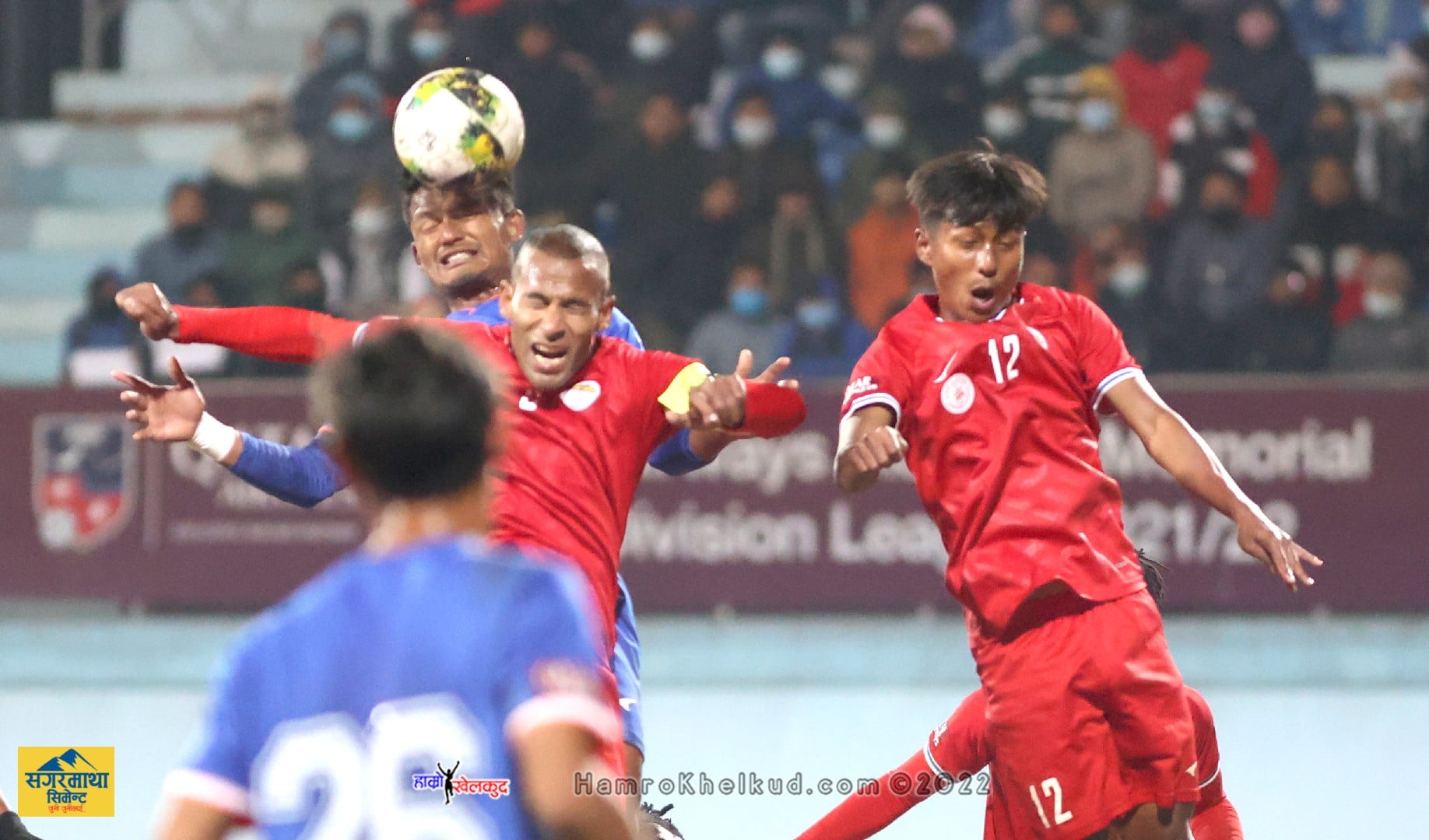त्रिपुरेश्वरस्थित दशरथ रंगशालामा शुक्रबार भएको खेलमा जावलाखेलका सुनिल खड्काले गोल गर्दा संकटाका उत्तम राईले बराबरी गोल फर्काए ।