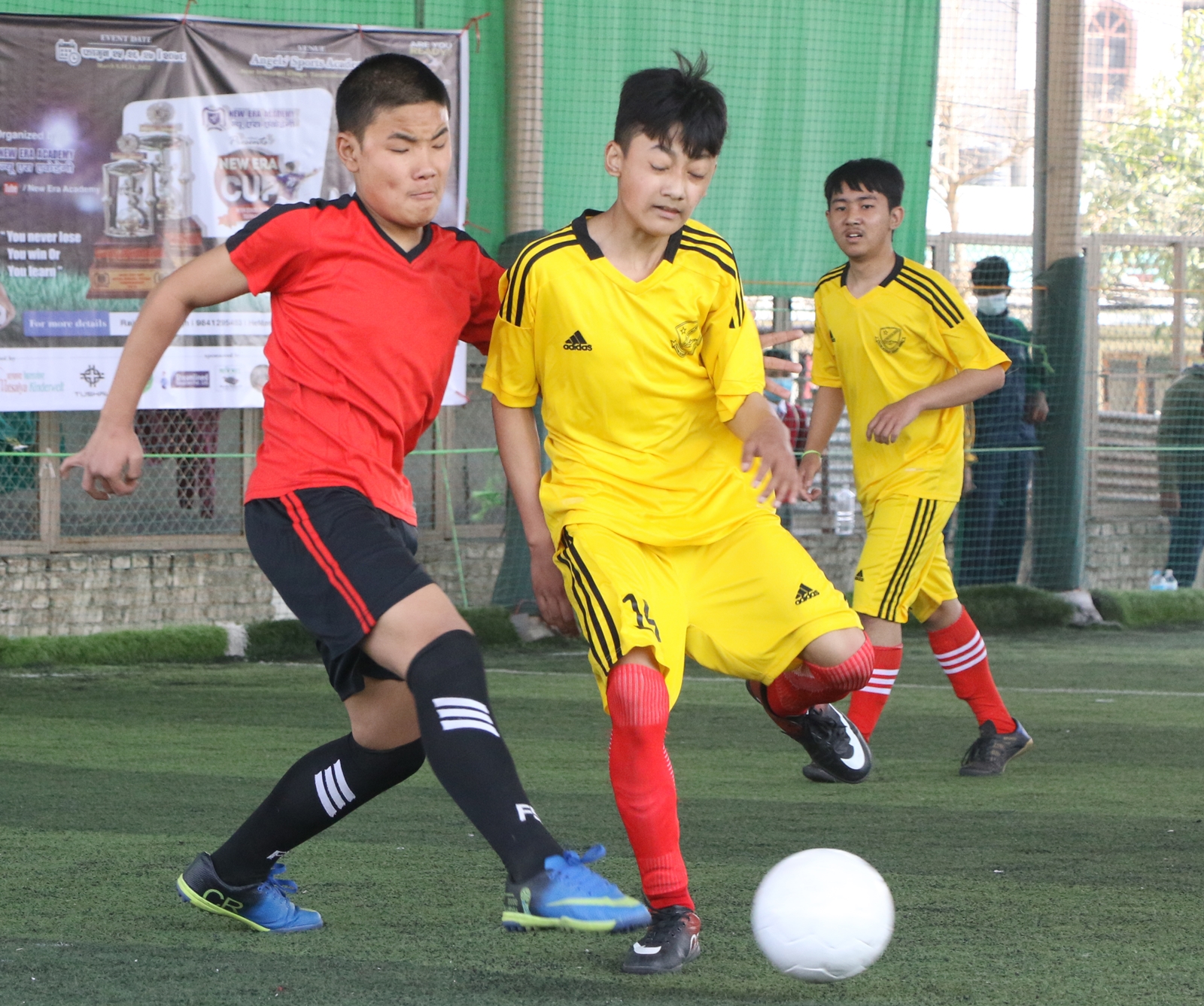 यस्तै समूह ‘ए’ बाट प्रगति बोर्डिङ स्कुल समूह विजेता र एन्जल्स हार्ट सेकेन्डरी स्कुल उपविजेता बन्दै नकआउट चरणमा पुग्न सफल भएको छ । प्रगतिले आयोजक न्यु एरा ‘ए’ लाई ३–० ले तथा एन्जल्स हार्टलाई २–१ ले हरायो । उपविजेता बनेको एन्जल्स हार्टले आयोजक न्यू एरालाई २–० ले हरायो । समूह ‘सी’ बाट सेक्रेट हार्ट र विभुतीले अन्तिम १६ मा स्थान बनाउन सफल भयो ।