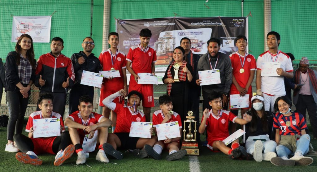 मनमैजुस्थित एन्जल्स स्पोर्ट्स एकेडेमीको फुटसल कोर्टमा शुक्रबार भएको फाइनलको निर्धारित समयमा १–१ गोलको बराबरीपछि पेनाल्टीमा स्वस्तिश्रीले बाजी मारेको हो । च्याम्पियन बनेसँगै स्वस्तिश्रीले आकर्षक शिल्ड र मेडल प्राप्त गरेको छ ।