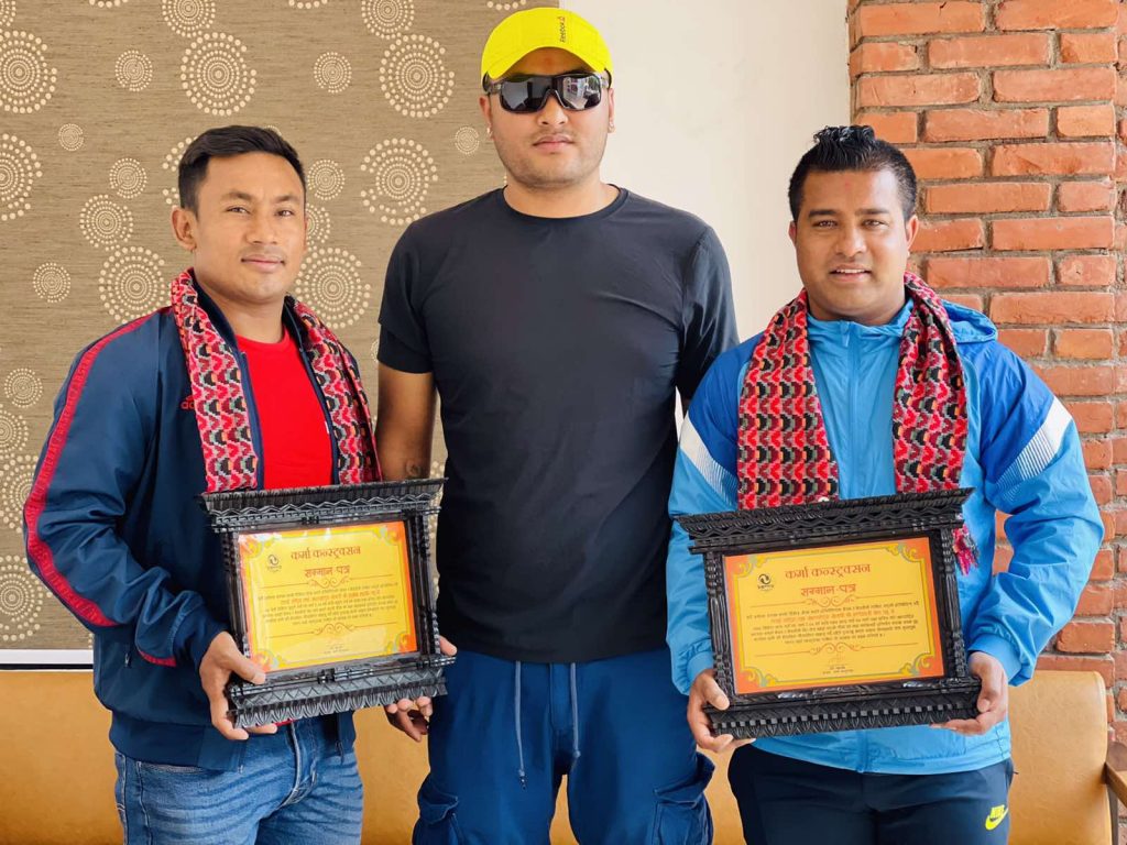 काठमाडौं (हाम्रो खेलकुद) – गत अक्टोबर २ र ३ मा जर्मनी सप्पन्न चेम्निज ओपन कराते प्रतियोगितामा एकल कातातर्फ स्वर्ण र ३५ बर्ष माथी स्वर्ण पदक बिजेता मन्देकाजी श्रेष्ठ तथा ७५ केजीतर्फ कास्यपदक र ३५ बर्षमाथि स्वर्ण पदक बिजेता मुकुन्द्र महर्जनलाई कर्मा कन्स्ट्रक्सनले सम्मान गरेको छ ।