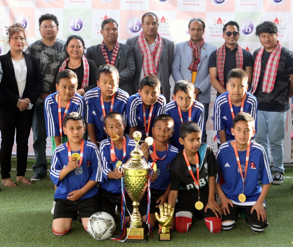 विजेतालाई राष्ट्रिय खेलकुद परिषद् (राखेप) का उपाध्यक्ष शिव कोइराला, अखिल नेपाल फुटबल संघ (एन्फा) का महासचिव इन्द्रमान तुलाधार, नेपाली राष्ट्रिय फुटबल टोलीका पूर्वकप्तान तथा स्वस्तिश्री गुरुकुलका ब्रान्ड एम्बासडर अनिल गुरुङ, विद्यालयका संस्पाथक अध्यक्ष रामकृष्ण चित्रकार, प्रबन्ध निर्देशक मीना महर्जन र शैक्षिक निर्देशक प्रवीण मोक्तानलगायतले पुरस्कृत गरे ।
