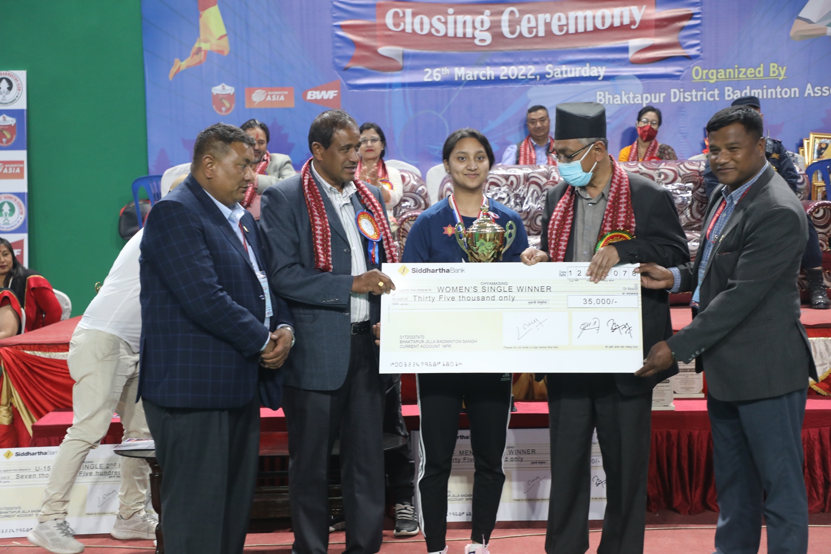 बिजयी खेलाडीहरुलाई संघिय सांसद प्रेम सुवाल, नेपाल ब्याडमिन्टन संघका अध्यक्ष रामजी बहादुर श्रेष्ठ, उपमेयर रजनी जोशी लगायतले पुरस्कृत गरे ।