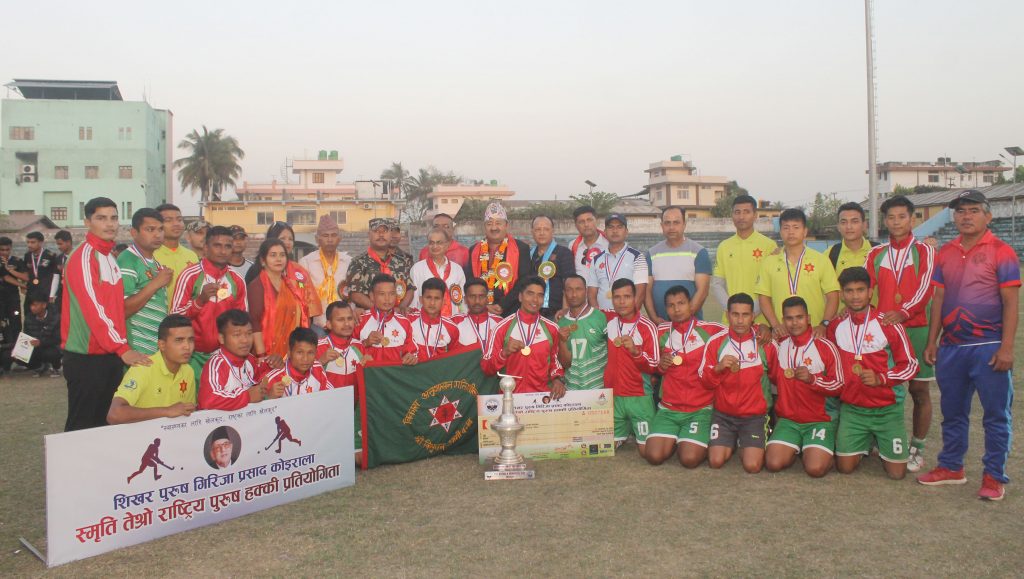 नेपाल हक्की संघको अयोजनामा गत मंगलबारबाट सुरु भएको प्रतियोगितामा विभागीय टोली नेपाली सेनासहित कर्णाली प्रदेश बाहेक छ वटै प्रदेशका सात टिमबीच उपाधिका लागि प्रतिष्प्रधा भएको थियो ।