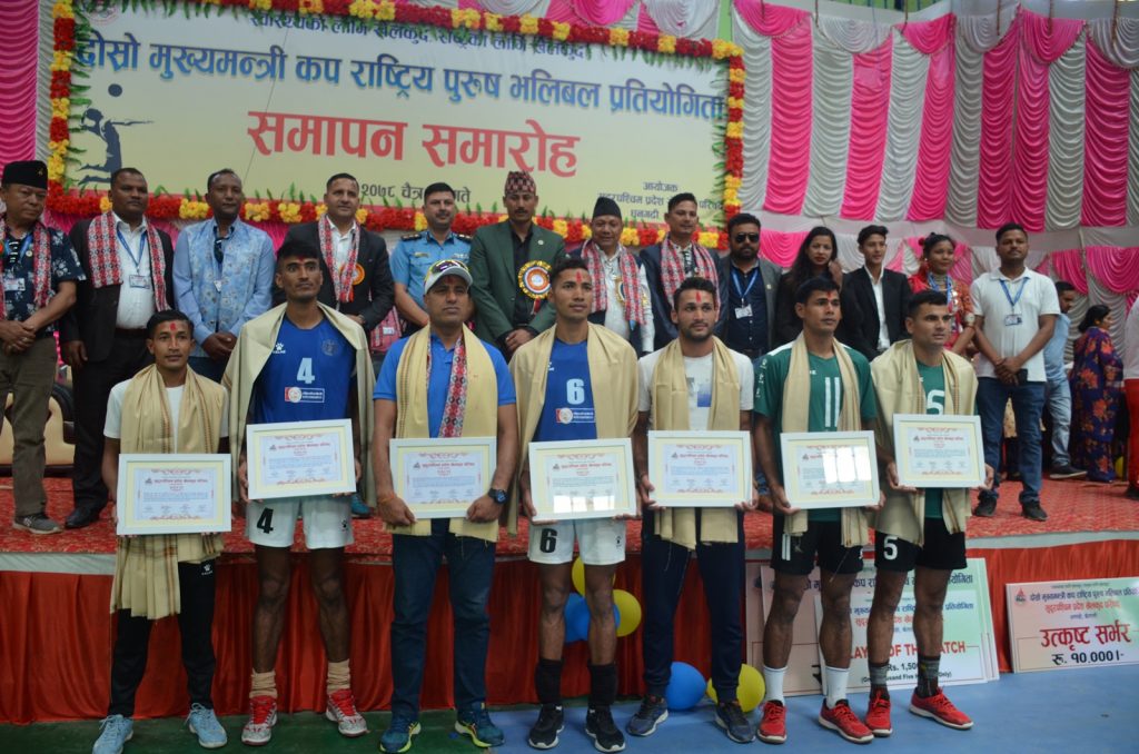 कैलालीको धनगढीमा भएको शनिबार सम्पन्न भएको मुख्यमन्त्री कप राष्ट्रिय पुरुष भलिबल प्रतियोगिताको समापन दौरान सुदूरपश्चिमका पुर्व तथा वर्तमान ८ राष्ट्रिय खेलाडीलाई सम्मानपत्रले सम्मानित गरिएको हो ।
