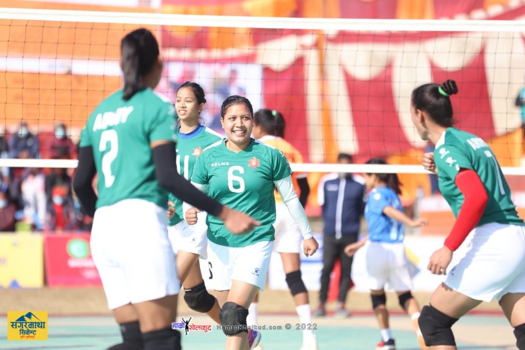 नेपालगन्ज (हाम्रो खेलकुद) – होङ्गान्जी न्यु डायमन्ड स्पोर्ट्स क्लबमाथि सोझो सेटमा जित निकाल्दै विभागीय त्रिभुवन आर्मी क्लब आठौं संस्करणको सगरमाथा सिमेन्ट प्रधानमन्त्री कप अन्तर्राष्ट्रिय आमन्त्रण महिला भलिबल प्रतियोगितामा तेस्रो भएको छ ।
