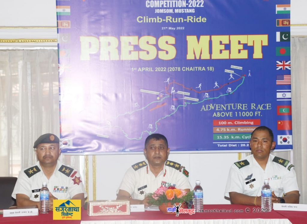 नेपाली सेनाले हरेक वर्ष एड्भेन्जर स्पोर्ट्सको दुई ठुला प्रतियोगिता गर्दै आईरहेको छ । सेनाले यस अघि दुईपटक राष्ट्रिय स्तरको प्रधानसेनापति हाई अल्टिच्यूड ट्राई एडभेन्चर आयोजना गरिसकेको छ । महासेनानी तथा सैनिक शारीरिक तथा तालिम केन्द्रका मुनाल बस्नेतको प्रतियोगिता आयोजनाको लागि आवश्यक बजेट नेपाली सेना व्यहोर्ने र प्रायोजकबाट उठाईने बताए । पत्रकार सम्मेलनमा प्रमुख सेनानी उज्वल केसीको पनि उपस्थिति रहेको थियो ।
