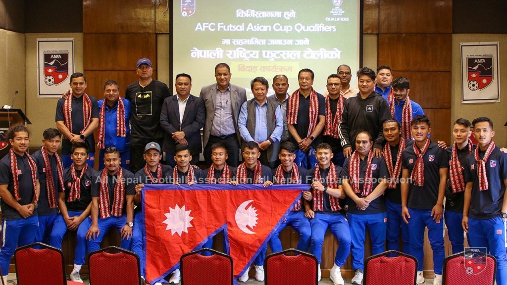 नेपाली टोलीलाई एन्फा अध्यक्ष कर्मा छिरिङ शेर्पा, उपाध्यक्ष शिक्षित पराजुली, महासचिव इन्द्रमान तुलाधर, फुटसल कमिटिका संयोजक रत्न कुमार श्रेष्ठ, सदस्य मधुसुदन उपाध्यय, फुटसलका प्रमुख विनोद गुरुङलगायतले बिदाई गरे । फुटसलका मुख्य प्रशिक्षक गौरव बस्नेतले गत साता २२ सदस्यीय टोलीबाट अन्तिम १४ सदस्यीय टोली घोषणा गरेका थिए ।