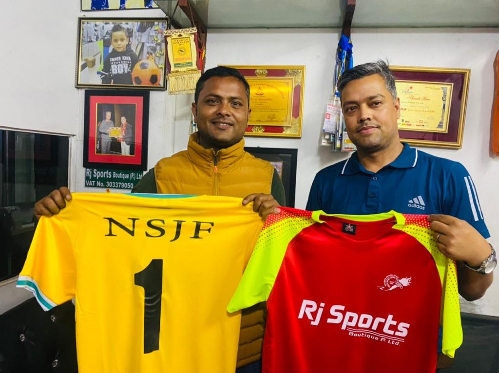 खेल पोशाक उत्पादक कम्पनी आरजे स्पोर्ट्सले आइतबार एनएसजेएफलाई जर्सी हस्तान्तर गरेको छ । आरजे स्पोर्ट्सका प्रवन्ध निर्देशक रमेश रुपाखेतीले मञ्चका कोषाध्यक्ष अन्जन खड्कालाई जर्सी हस्तान्तर गरे ।