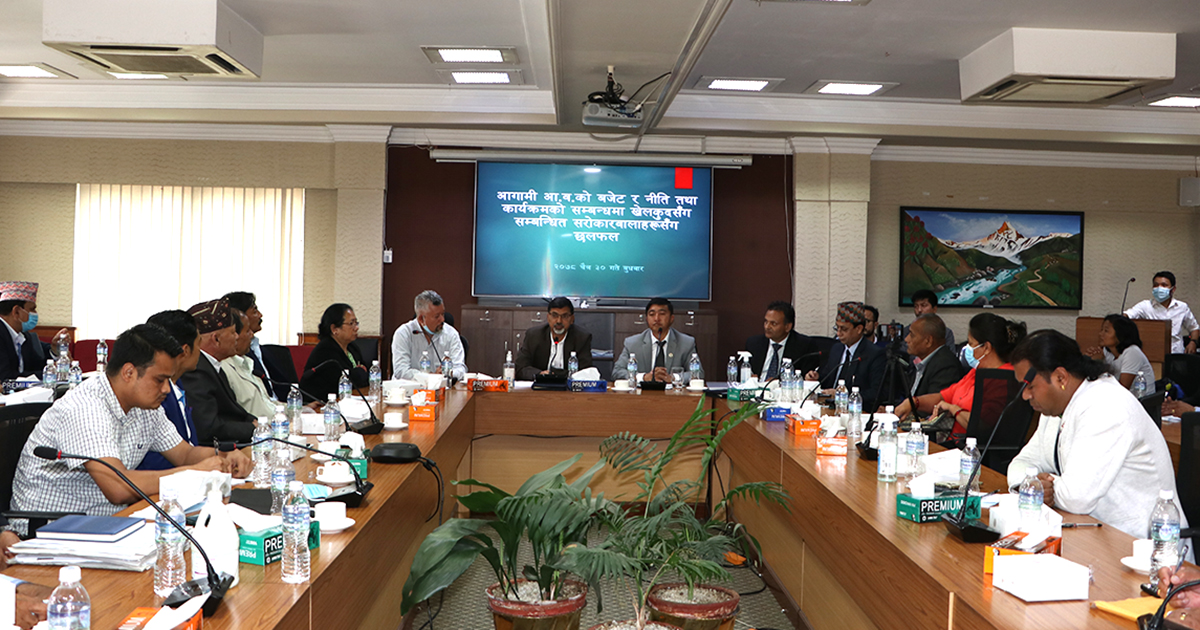 काठमाडौं (हाम्रो खेलकुद) – आगामी आर्थिक बर्ष ०७९–८० का लागि नीति कार्यक्रम र बजेट निर्माणका लागि सुझाव लिन अर्थ मन्त्रालयले बुधबार खेलकुद क्षेत्रका विभिन्न संघसंस्था, प्रशिक्षक र खेलाडीसँग छलफल गरेको छ ।