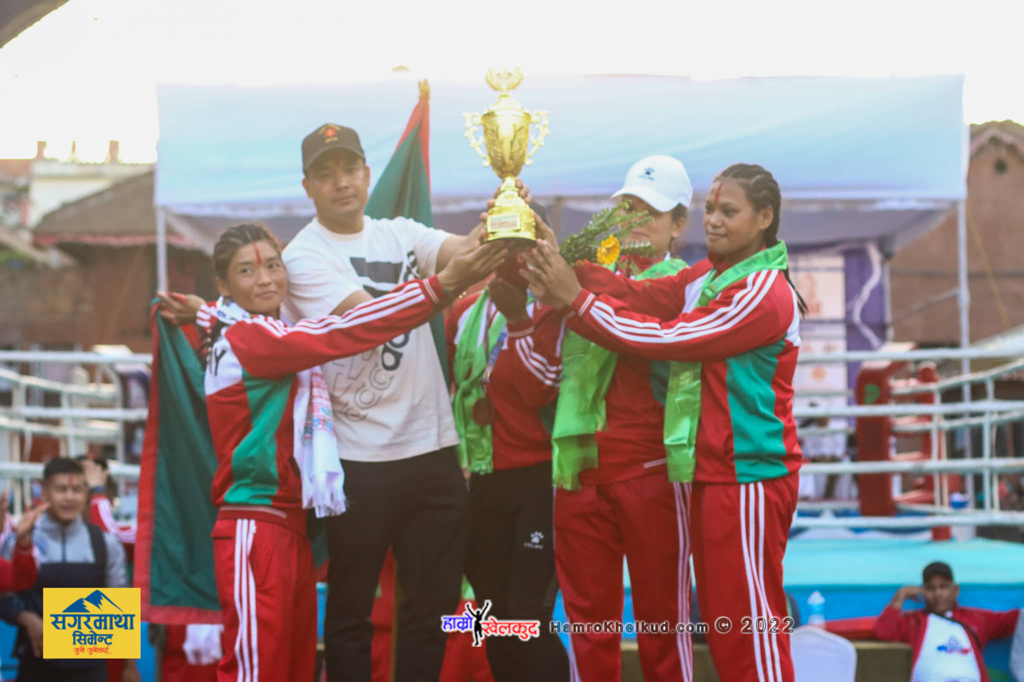 विजयी टोलीलाई नेपाली कांग्रेसकी नेतृ सृजना सिंह लगायतले पुरस्कृत गरे । गत मंगलबारदेखि शुरु भएको प्रतियोगितामा पुरुषतर्फ ७ र महिलामा ५ गरी १२ स्पर्धा समावेश गरिएको थियो । प्रतियोगितामा सातै प्रदेश र तीन विभागीय टोली आर्मी, प्रहरी र एपीएफ गरी १० टिमका १ सय २ खेलाडीले प्रतिस्पर्धा गरेका थिए ।