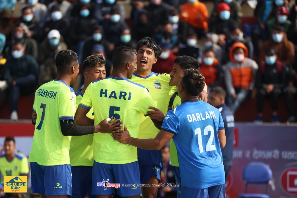 हरि प्रसाद पाण्डे (कप्तान), सुजन चोखाल, राजन दर्लामी मगर, सन्तोष थापा मगर, घनश्याम चौधरी, किरण गुरौं, हिमाल सुनारी, प्रेम कुमाल, जीवन सुनार, रवि केसी, विवश आले मगर र याम क्षेत्री, रमेश केसी (मुख्य प्रशिक्षक), युवराज भण्डारी (प्रशिक्षक र जीवन भण्डारी (टिम व्यवस्थापक)