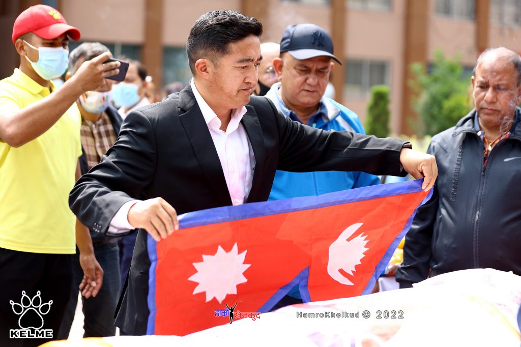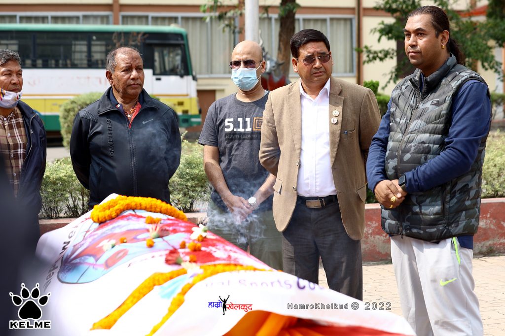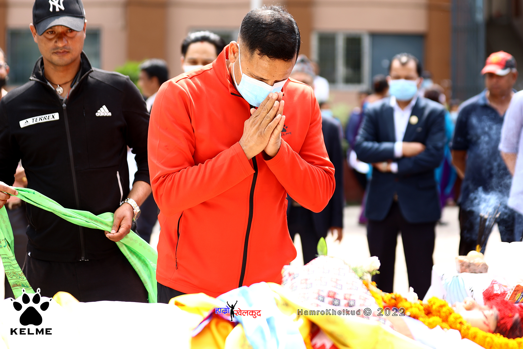 स्व.चौधरीको शवमा राष्ट्रिय खेलकुद परिषद (राखेप) का सदस्य सचिव टंकलाल घिसिङले राष्ट्रिय झण्डा र राष्ट्रिय खेलकुद परिषद्को झण्डा ओढाउनुका साथै अबिर तथा फुल मालाले श्रद्धान्जली ब्यक्त गरे ।