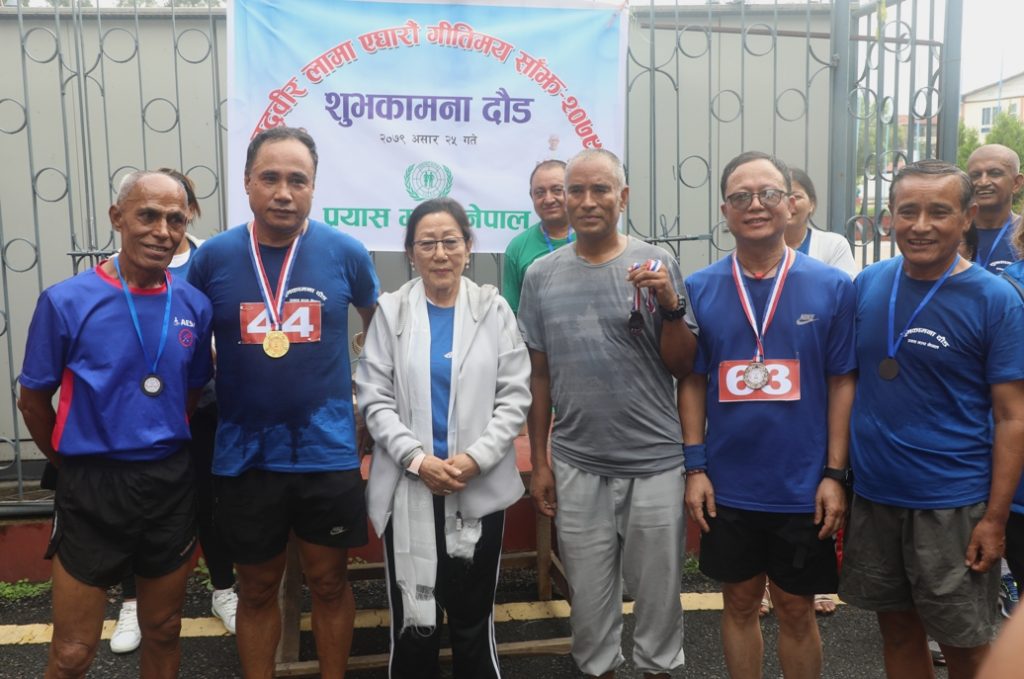 काठमाडौं (हाम्रो खेलकुद) – देवलाल महर्जन र याङदी लामा शेर्पा बुद्धवीर लामा ११औं गीतिमय साँझको सफलताका लागि आयोजित ५ किलोमिटर शुभकामना दौडमा शनिबार पहिलो भएका छन् ।