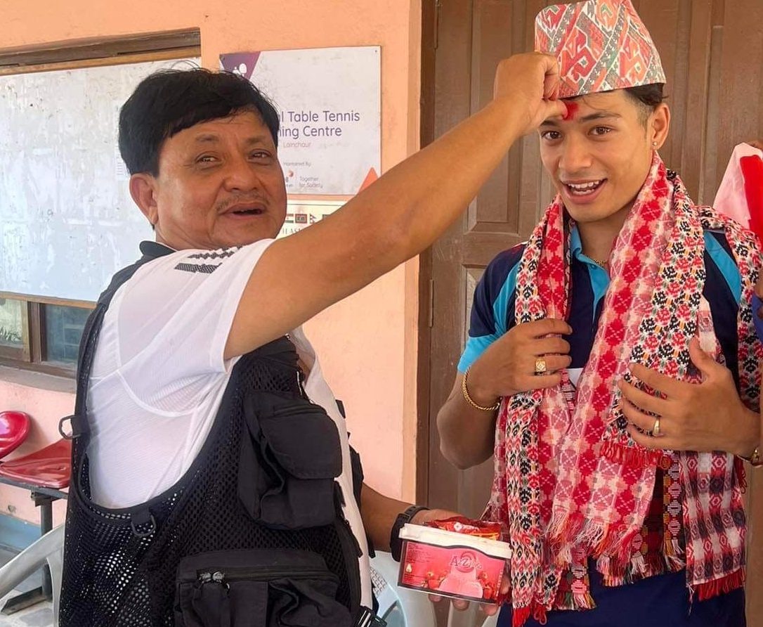 काठमाडौं (हाम्रो खेलकुद) – टेवल टेनिसका राष्ट्रिय च्याम्पियन स्यान्टु श्रेष्ठलाई मंगलबार एक कार्यक्रमबीच अखिल नेपाल टेबल टेनिस संघले उज्वल भविष्यको शुभकामनासहित बिदाई गरेको छ ।