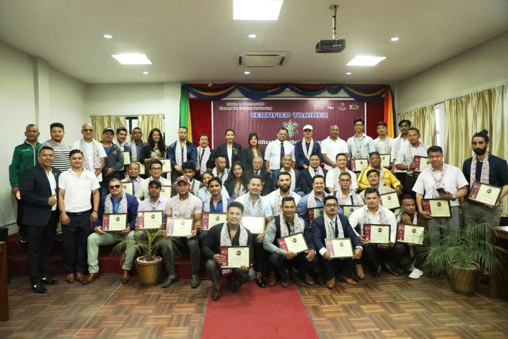 काठमाडौं (हाम्रो खेलकुद) – नेप्लिज फेडेरेशन अफ बडिबिल्डिङ एण्ड फिटनेशले शारिरीक सुगठनका प्रशिक्षहरुलाई दिक्षित गरेको छ ।