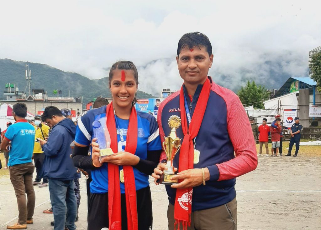 पोखरा (हाम्रो खेलकुद) – च्याम्पियन नेपाल पुलिस क्लबकी ओपन स्पाइकर उषा भण्डारी लामाचौर कप महिला तथा पुरुष राष्ट्रिय भलिबल प्रतियोगिता अन्तरगत महिलातर्फ सर्वाेत्कृष्ट खेलाडी बनेकी छन् ।