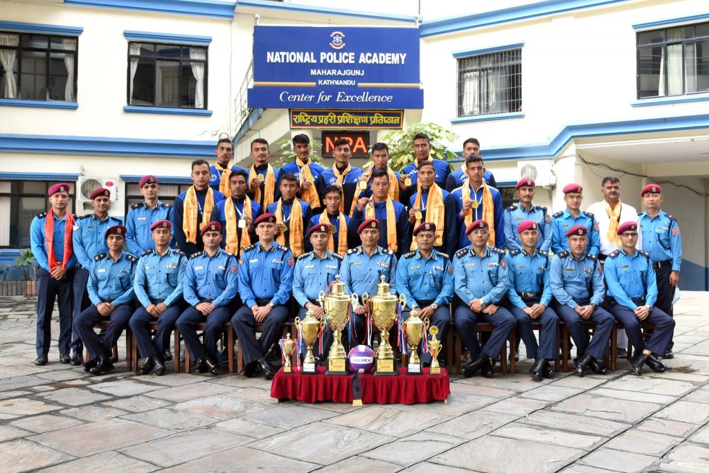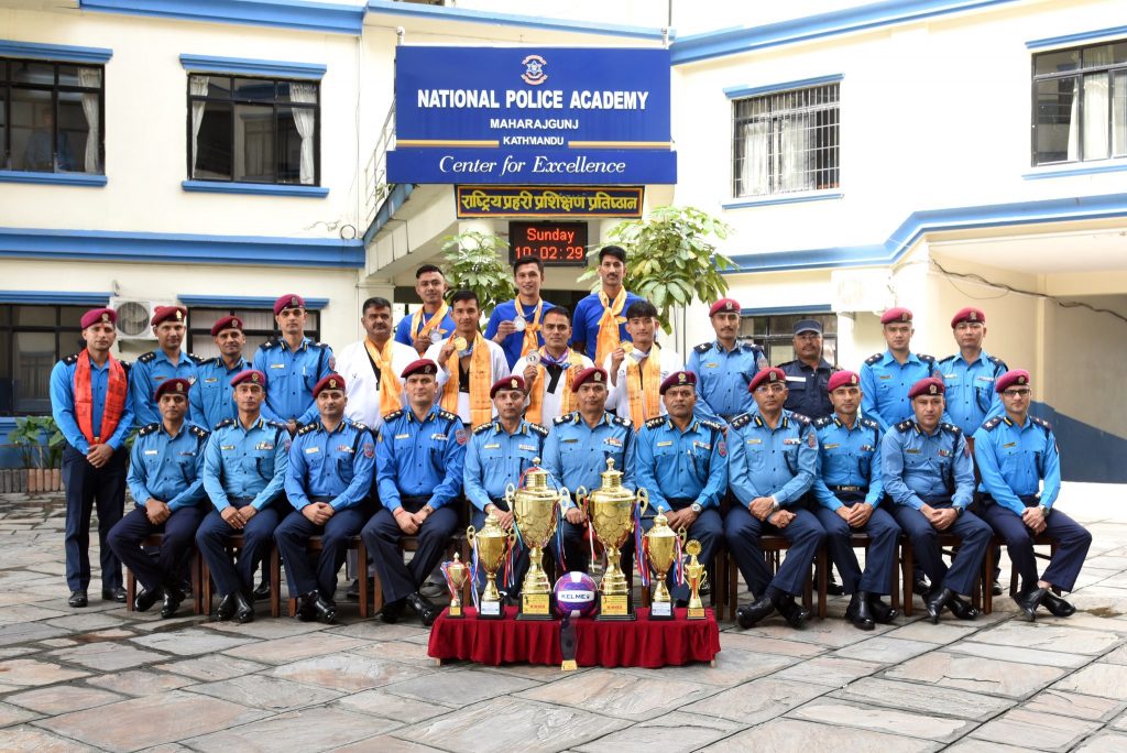 राष्ट्रिय प्रहरी प्रशिक्षण प्रतिष्ठानका कार्यकारी निर्देशक एवं नेपाल प्रहरी खेलकुद समितिका सदस्य–सचिव प्रहरी अतिरिक्त महानिरीक्षक मुकुन्दराज आचार्यले आइतबार एक कार्यक्रमकाबीच विभिन्न खेलमा पदक प्राप्त गर्न सफल नेपाल प्रहरीको खेलाडीहरुलाई सम्मान तथा बधाई ज्ञापन गरेको हो ।