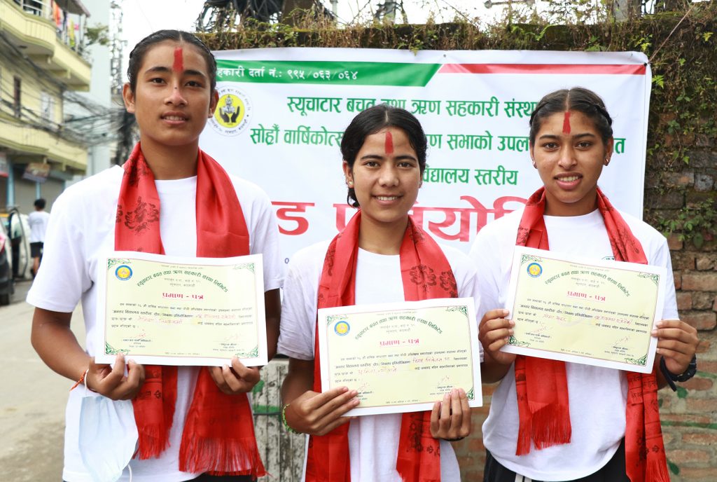 न्यु डायमन्ड युथ स्पोर्ट्स क्लबबाट राष्ट्रिय स्तरको भलिबल प्रतियोगिता खेल्ने जेनिशा विश्वकर्मा र निशा महरले स्यूचाटारमा शनिबार भएको ३ किमि गल्स दौडमा दोस्रो र तेस्रो स्थान हासिल गरेकी हुन् । यि दुवै नैकापमा रहेको न्यू डायमन्ड एकेडेमीमा अध्ययनरत छन् । यस विधामा विश्व निकेतन स्कुलकी सुनिता न्यौपाने पहिलो भइन् ।