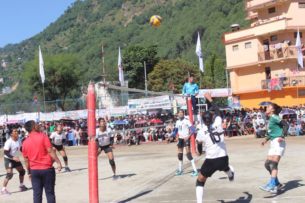म्याग्दीको बेनीस्थित खुल्लामञ्चको भलिबल कोर्टमा आइतबार भएको रोमाञ्चक र प्रतिस्पर्धात्मक खेलको पहिलो सेटमा २५–२० को जित निकाल्न सफल भयो । दोस्रो सेट आर्मीले २५–१९ ले जित्दै खेललाई बराबरीमा ल्याए ।