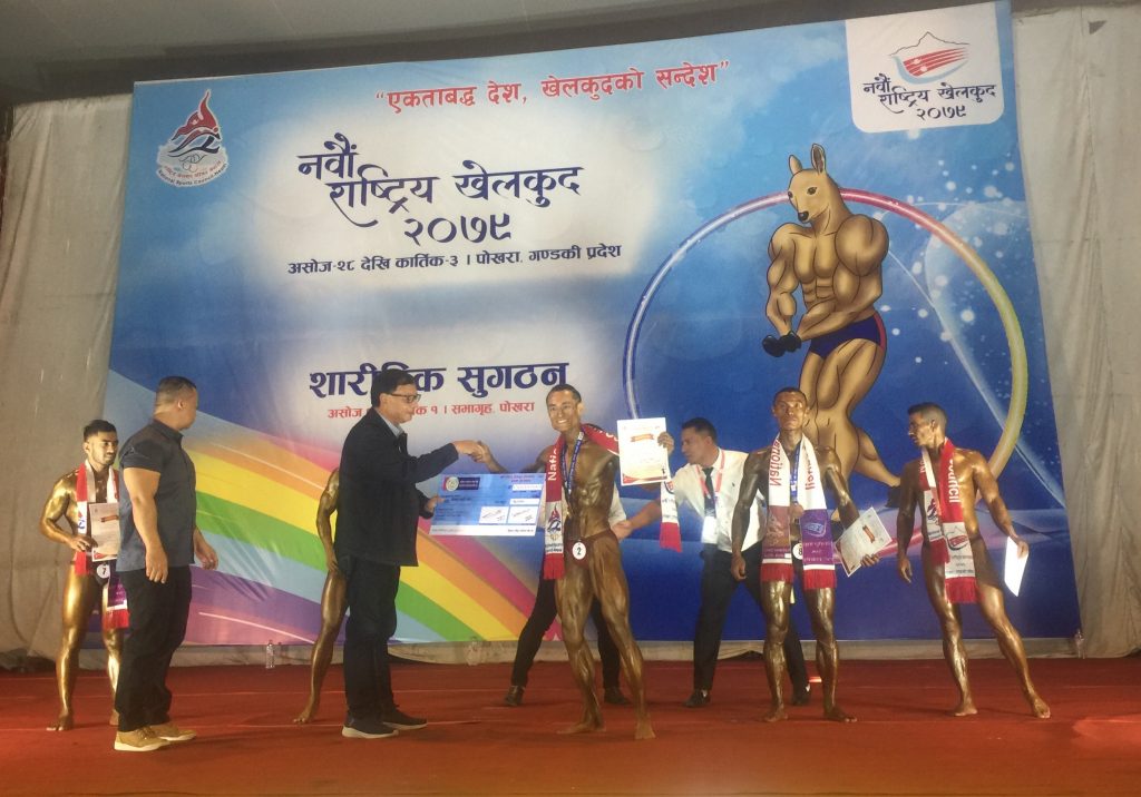 पोखरा (हाम्रो खेलकुद) – नवौं राष्ट्रिय खेलकुद प्रतियोगिता अन्तर्गत शारीरिक सुगठनको पहिलो स्वर्ण गण्डकी प्रदेशले जितेको छ ।