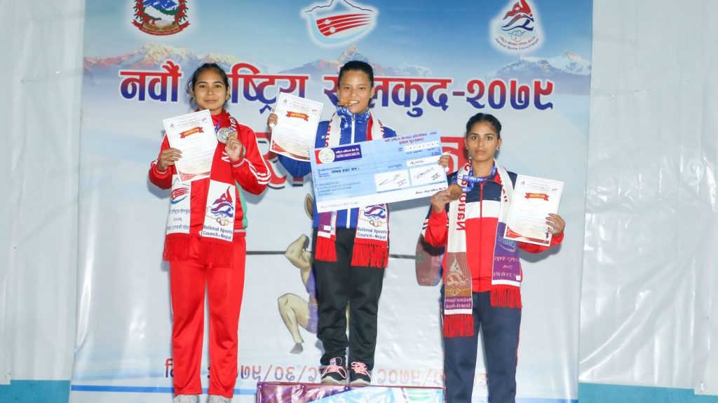 यसअघि, महिला ४९ केजी तौल समूहमा नेपाल पुलिसकी संगीता राई, पुरुष ५५ केजी तौल समूहमा आर्मीका तुलाराम महतो र महिला ४५ केजी तौल समूहमा पुलिसकी हिरामोती थारुले स्वर्ण जितिसकेका छन् ।