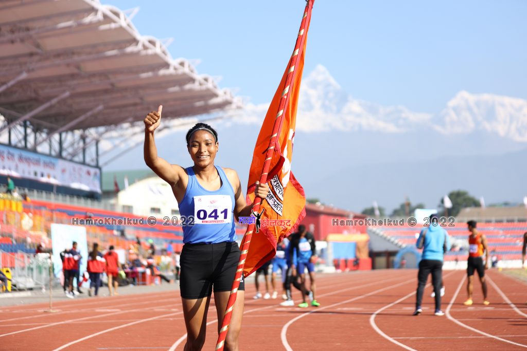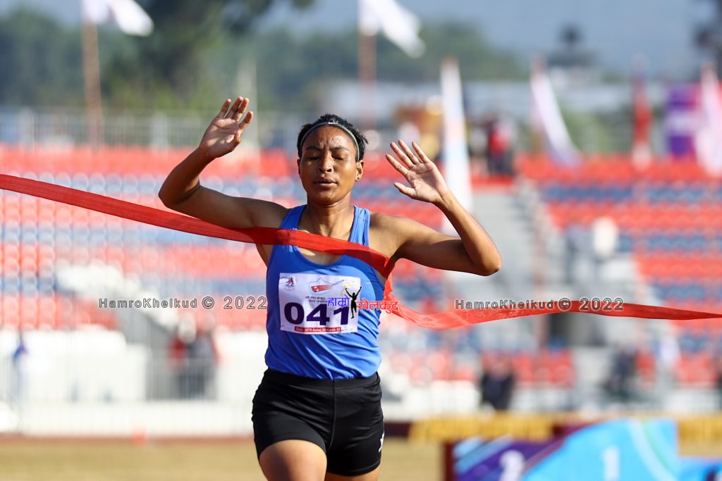 पोखरा (हाम्रो खेलकुद) – विभागीय नेपाल एपिएफ क्लबकी रमिता कुमारी थारुले नवौं राष्ट्रिय खेलकुद अन्तरगत महिला ४ सय मिटर दौडमा नयाँ राष्ट्रिय कीर्तिमानसहित स्वर्ण जितेकी छिन् ।