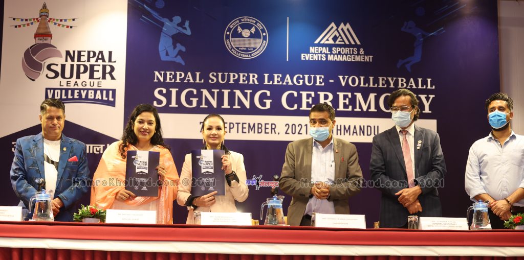 नेपाल भलिबल संघले महिला र पुरुष भलिबलको फ्रेन्चाईज लिग नेपाल सुपर लिग भलिबल आयोजना गर्न नेपाल स्पोर्ट्स म्यानेजमेन्ट एण्ड इभेन्ट्स प्रालिकासँग १० वर्षको सम्झौता गरेको थियो । सम्झौता सन् २०३० सम्म रहेको छ ।