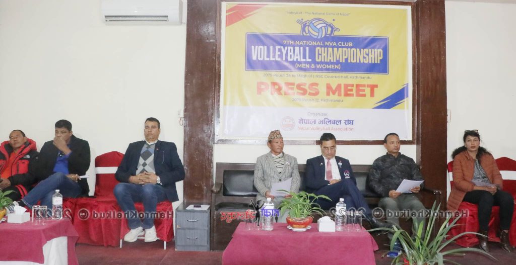 नेपाल भलिबल संघले मंगलबार राजधानीमा पत्रकार सम्मेलन गरी सातौं संस्करणको एनभिए राष्ट्रिय महिला तथा पुरुष क्लब भलिबल च्याम्पियनसिप पुस २४ बाट माघ १ गतेसम्म त्रिपुरेश्वरस्थित राष्ट्रिय खेलकुद परिषद (राखेप) को कभर्डहलमा हुने जानकारी गराएको छ ।