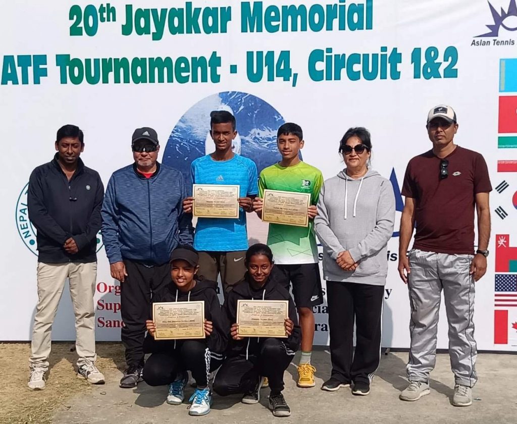 काठमाडौं (हाम्रो खेलकुद) – नेपालका स्वस्तिका विष्ट र शिभाली गुरुङको जोडी २०औं जयकर स्मृति एटीएफ यु–१४ टेनिस प्रतियोगिताअन्तर्गत सर्किट– १ को गल्स डबल्समा शुक्रबार च्याम्पियन बनेका छन् ।