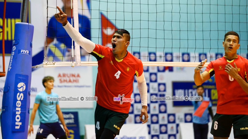 नेपाल एपिएफ क्लबलाई ३–० को सोझो सेटमा हराउँदै आर्मी उपाधि नजिक पुगेको हो । त्रिपुरेश्वरस्थित राष्ट्रिय खेलकुद परिषद (राखेप) को कभर्डहलमा शनिबार भएको प्रतिस्पर्धात्मक बनेको पहिलो सेट आर्मीले २५–२३ ले आफ्नो पक्षमा पार्न सफल भयो ।