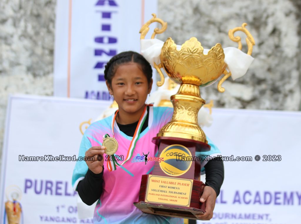 यस्तै प्योरल्याण्ड इन्टरनेसनल एकेडेमीका एन्जिला प्रधान प्रतियोगिताको सर्वाेत्कृष्ट खेलाडी घोषित भइन् । उनले ट्रफी प्राप्त गरिन् । प्रतियोगिता दौरान सिक्किमकै महिला राष्ट्रिय फुटबल खेलाडी करिश्मा राई (दक्षिण सिक्किम राभाङ्ला) लाई सम्मानित गरिएको थियो । कालिङपोङ कोलकत्ता थन्डर्स बोल्ड्सले तेस्रो स्थान हासिल गरेको छ ।