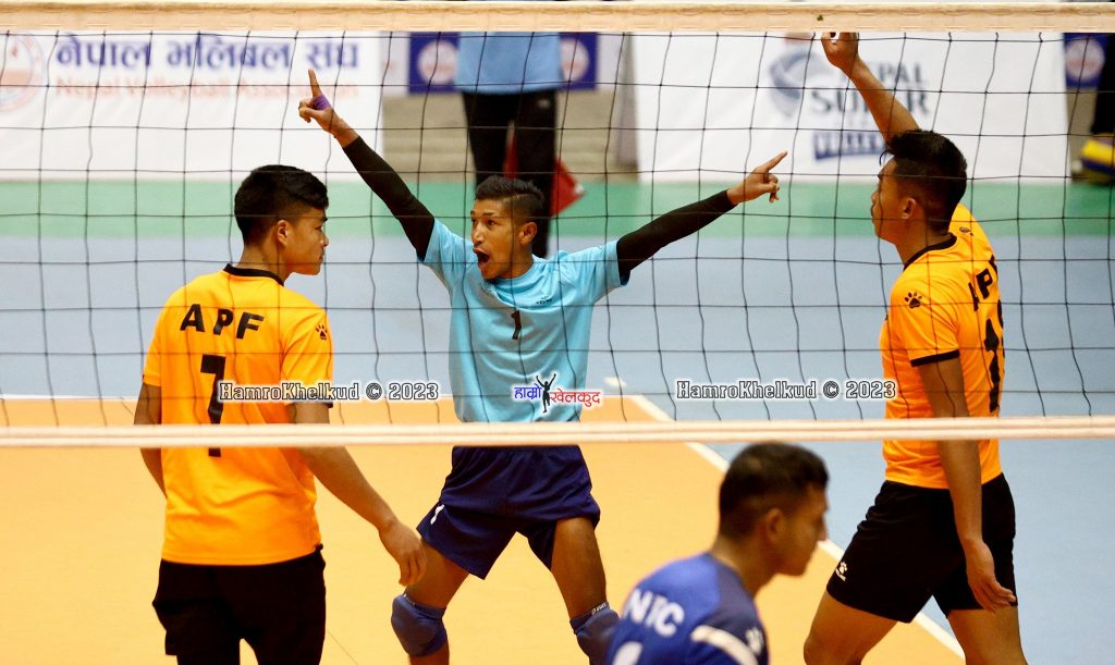 पोखरा रंगशालास्थित भलिबल कोर्टमा सोमबार भएको खेलमा एपिएफले पुलिसलाई २५–१९, २१–२५, २५–१९ र २५–१८ को सेटमा हराउन सफल भयो । दुई साता अघि काठमाडौंमा भएको सातौं एनभिए क्लब च्याम्पियनसिपमा पनि एपिएफले पुलिसलाई ३–१ को सेटमा पराजित गर्दै तेस्रो स्थान हासिल गरेको थियो ।
