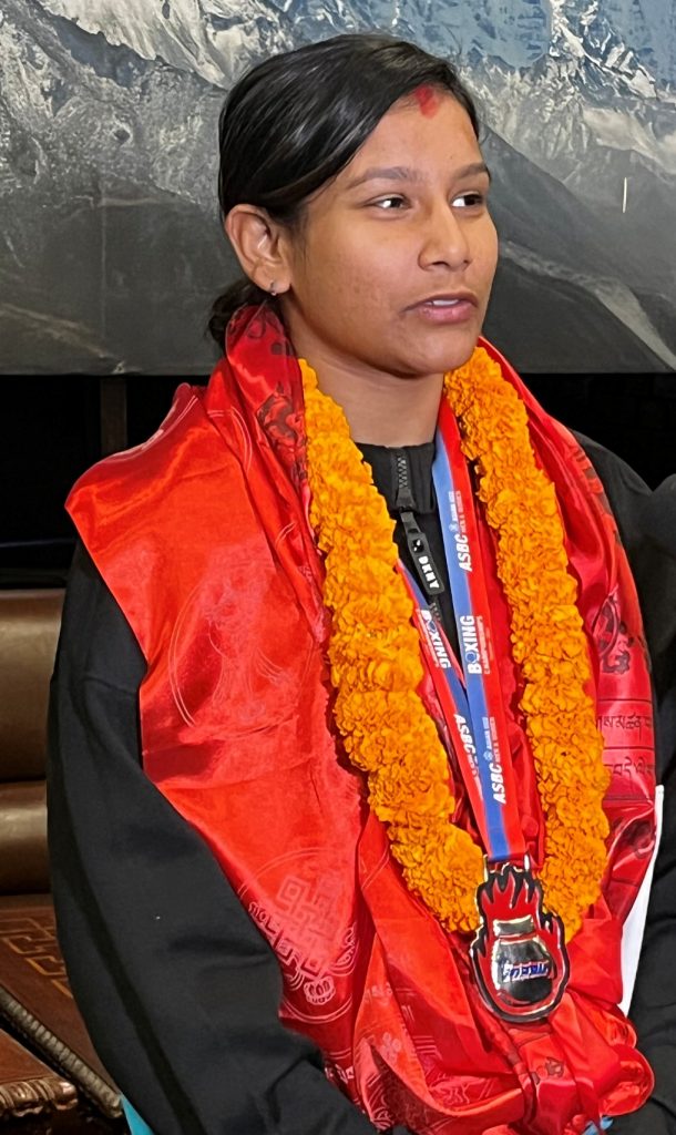 त्रिभुवन अन्तर्राष्ट्रिय विमानस्थलमा राष्ट्रिय खेलकुद परिषदका सदस्य–सचिव टंकलाल घिसिङ, नेपाल बक्सिङ संघका अध्यक्ष राम अवालेलगायतले टोलीलाई भव्य स्वागत गरे ।