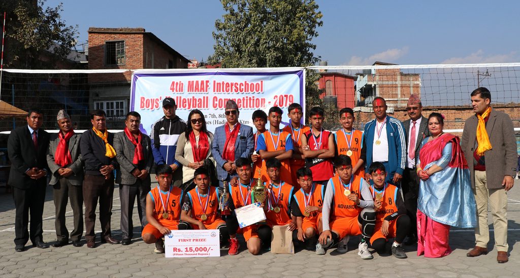 काठमाडौं (हाम्रो खेलकुद) – एडभान्स इंग्लिस बोर्डिङ स्कुलले चौथो संस्करणको माफ अन्तर विद्यालय ब्वाइज भलिबल प्रतियोगिताको उपाधि जितेको छ ।