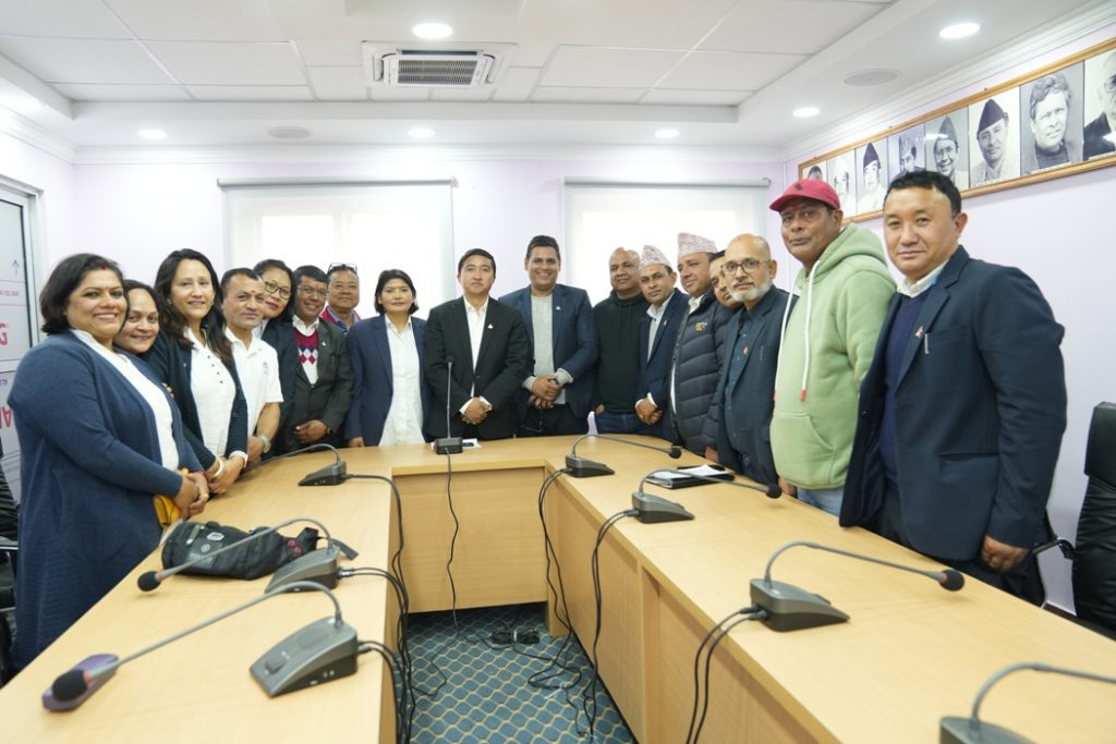 काठमाडौं (हाम्रो खेलकुद) – राष्ट्रिय खेलकुद परिषद् (राखेप) कर्मचारी संघका पदाधिकारीले राखेपका सदस्य–सचिव टंकलाल घिसिङलाई बिहीबार भेट गरेका छन् ।